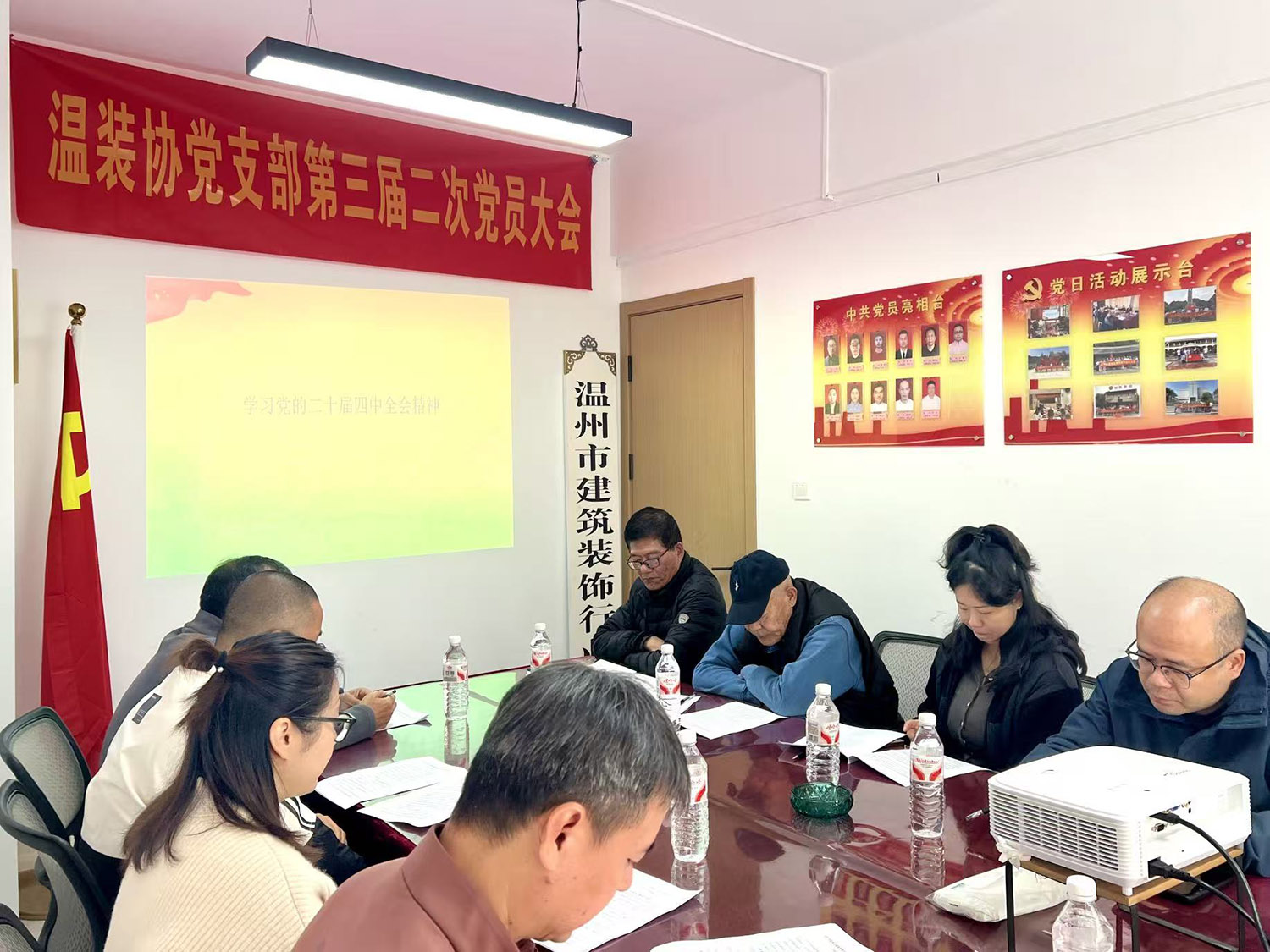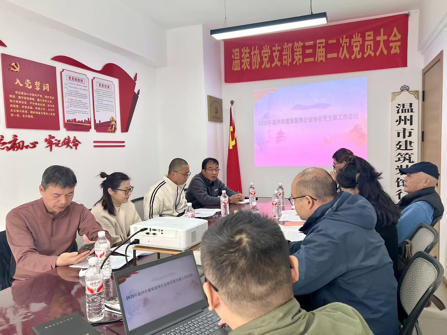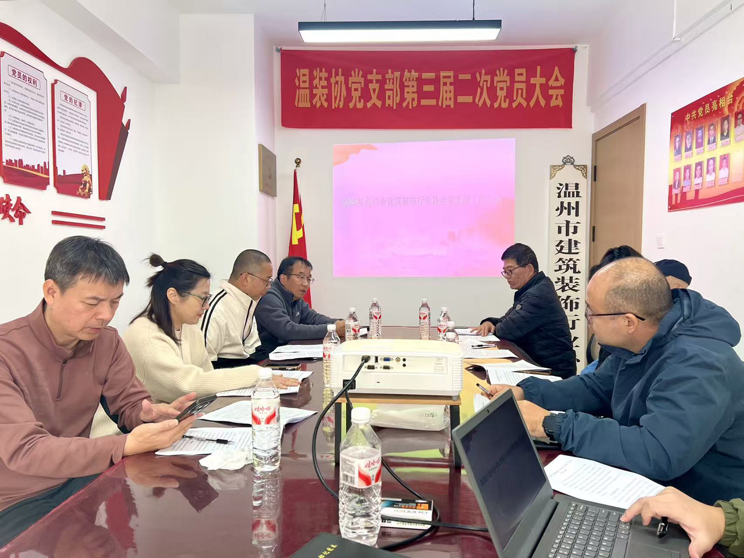 2025年11月27日上午,中共温州市建筑装饰行业协会党支部在协会会议室召开了第三届二次党员大会。本次会议主要议程是:学习党的二十届四中全会精神;汇报2025年协会党支部党建工作总结;进行党员民主评议和召开各党小组会议。会议由支部书记王少春主持。