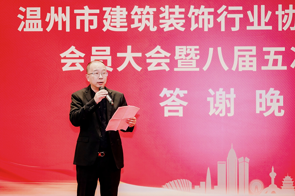 温州市住房和城乡建设局建筑市场监管处处长王利祥会上致词,他表示,本次装饰协会会议的隆重召开,既是行业总结过往、谋划未来的盛会,更是凝聚共识、乘势而上,助力行业高质量发展的重要契机,恰逢其时,意义深远;展望前路,站在“十五五”发展新征程的历史起点,市装饰行业作为连接建筑产业与民生福祉的关键纽带,他提出了三点建议:一是要明辨时势,把握行业发展的历史方位;二是要苦练内功,筑牢企业竞争的核心根基;三是要携手共进,营造良性发展的行业生态。