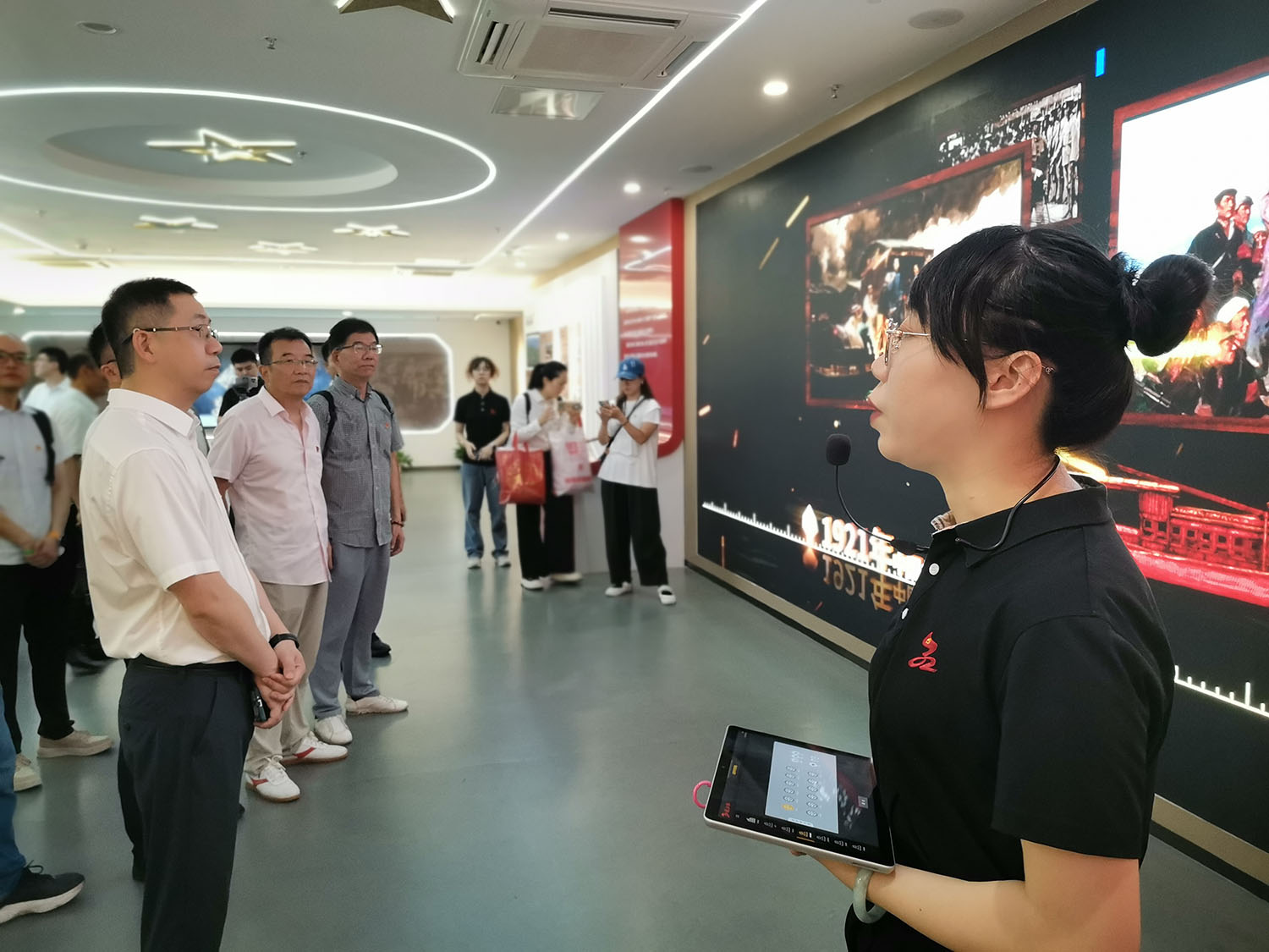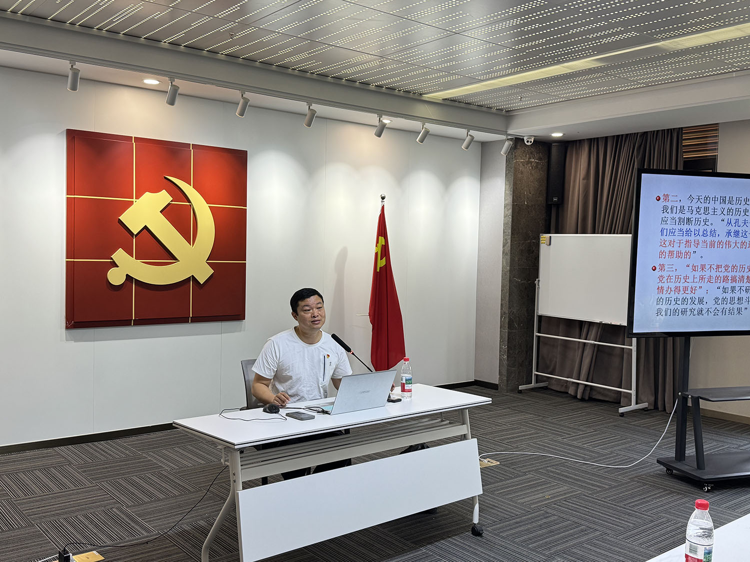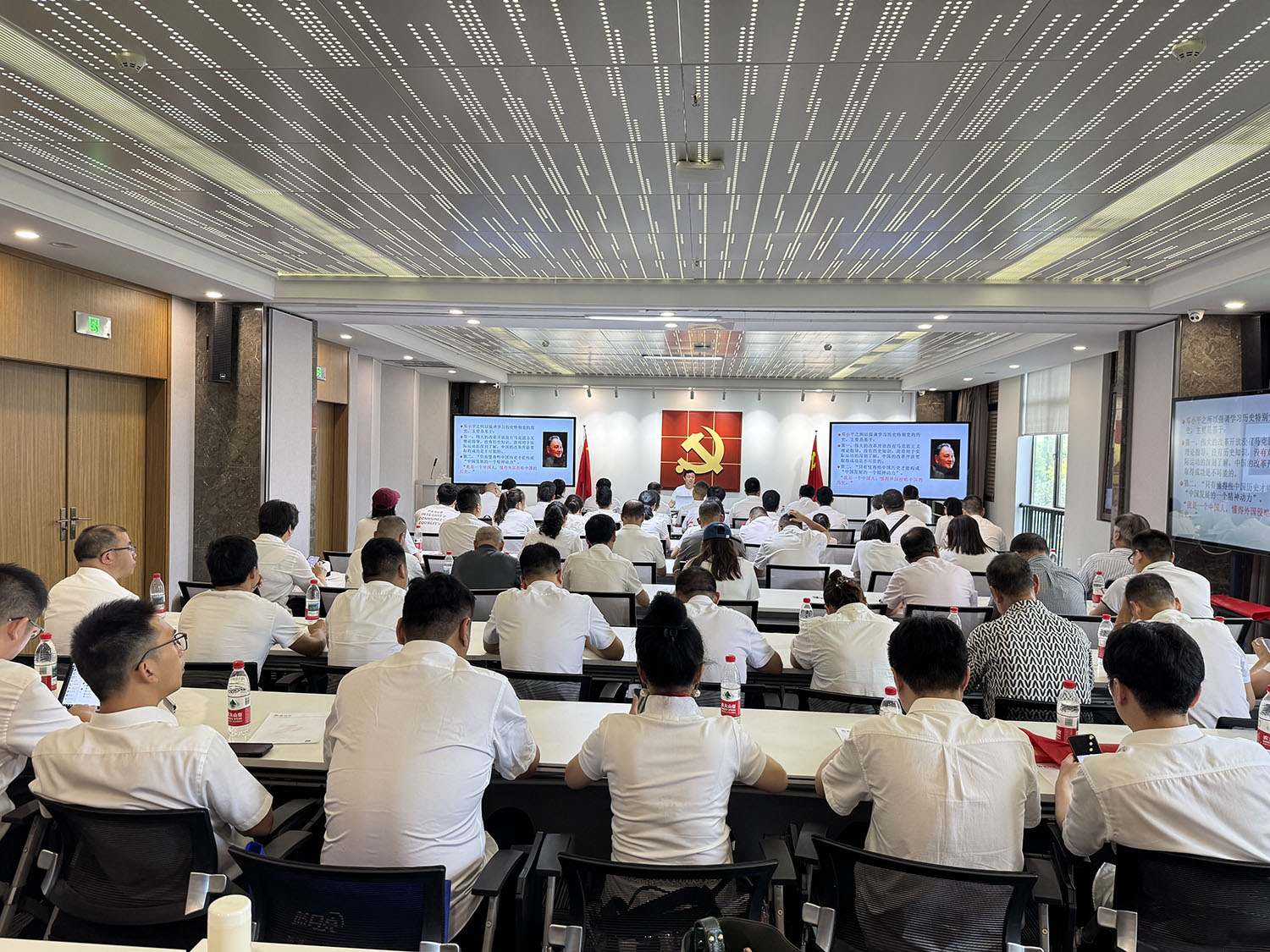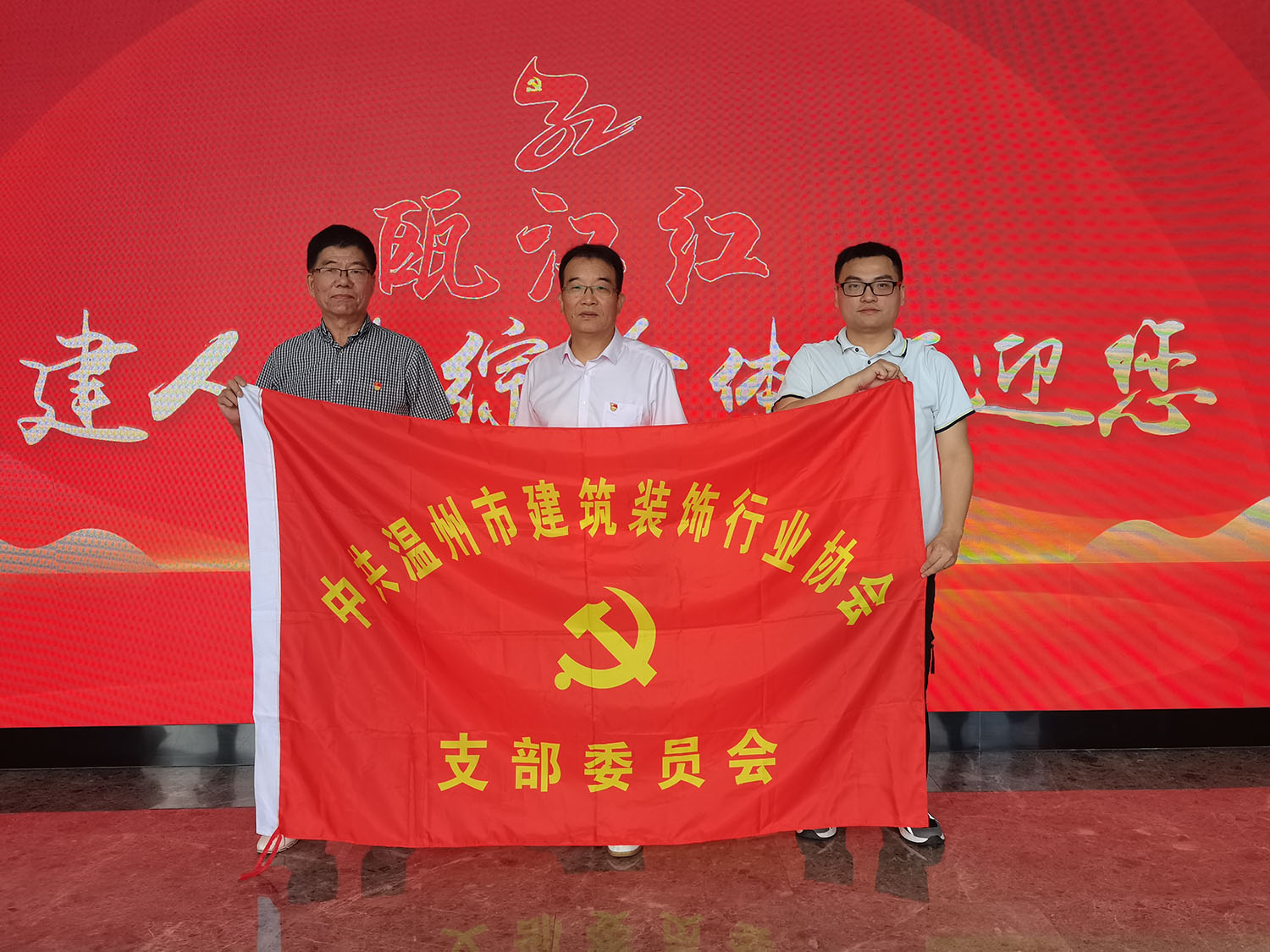 为庆祝中国共产党成立104周年,2025年07月01日,温州市工商联一片组二小组各协会党支部书记和部分党员齐聚三垟湿地“瓯江红”党建人才综合体举行观党史图片、听党课主题党日活动。我协会党支部书记王少春、委员吴小江和党员蔡文义参加了本次活动。