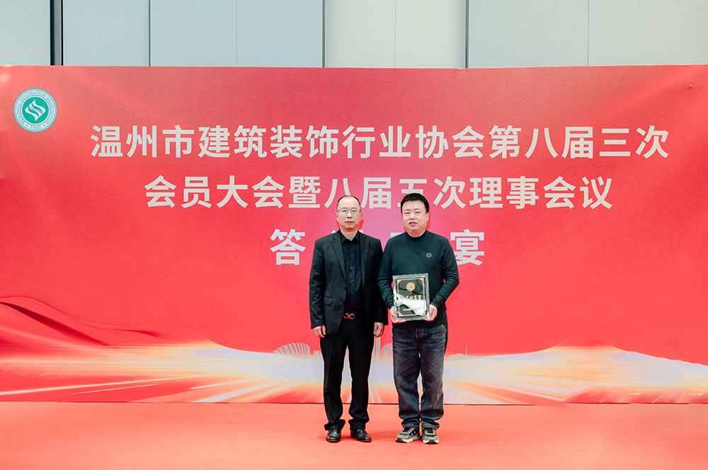 温州市住房和城乡建设局建筑市场监管处处长王利祥会上致词,他表示,本次装饰协会会议的隆重召开,既是行业总结过往、谋划未来的盛会,更是凝聚共识、乘势而上,助力行业高质量发展的重要契机,恰逢其时,意义深远;展望前路,站在“十五五”发展新征程的历史起点,市装饰行业作为连接建筑产业与民生福祉的关键纽带,他提出了三点建议:一是要明辨时势,把握行业发展的历史方位;二是要苦练内功,筑牢企业竞争的核心根基;三是要携手共进,营造良性发展的行业生态。